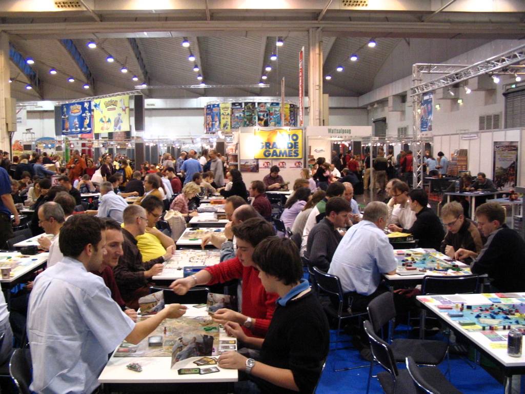Essen is a city of about 600,000 people, but few people outside of Germany know the city. It is famous among gamers for Essen Spiel Tage (Essen Game Days), the world’s largest game fair. Large and small publishers exhibit their games, vendors sell new games and old, and gamers play and buy games. There are many tables for playing games. Most of the activity centers around strategy board games and similar things. There is also a hall for comics, another focused a bit more on role-playing games, and there is a kids’ area. (For gamers considering a trip to Essen Spiel Tage, Board Game Geek has a FAQ.)