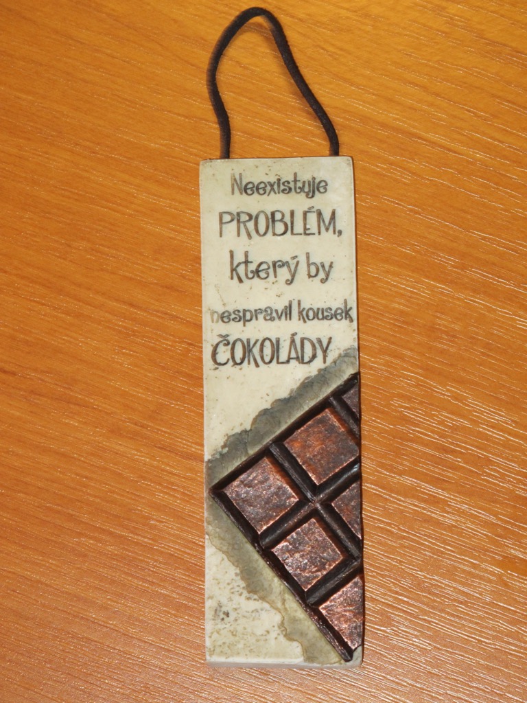 My last day in Praha. I was happy to find that souvenir. I found it in a department store, and it meets my goals for souvenirs: It was made for locals, it reminds me of the trip, and it does not take up my luggage space. On top of that, it is about chocolate, and I knew immediately what it said in spite of the foreign language.