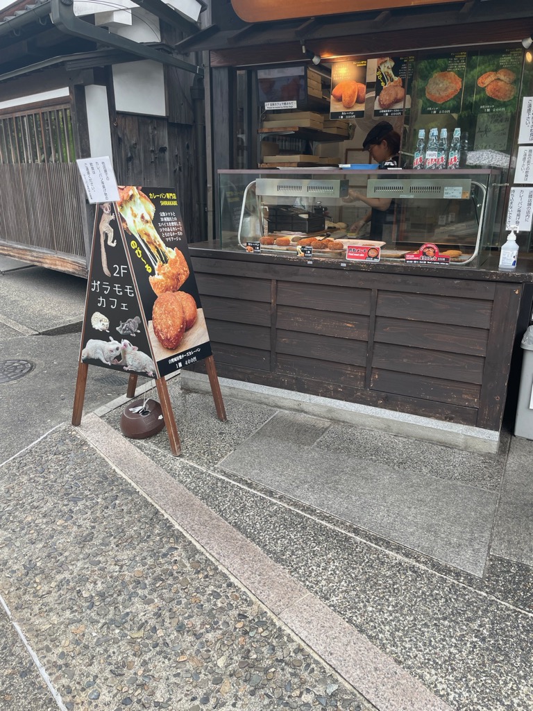 | Shop in Bikan Historical Area. I bought mini replicas of okonomiyaki and hanami dango. |